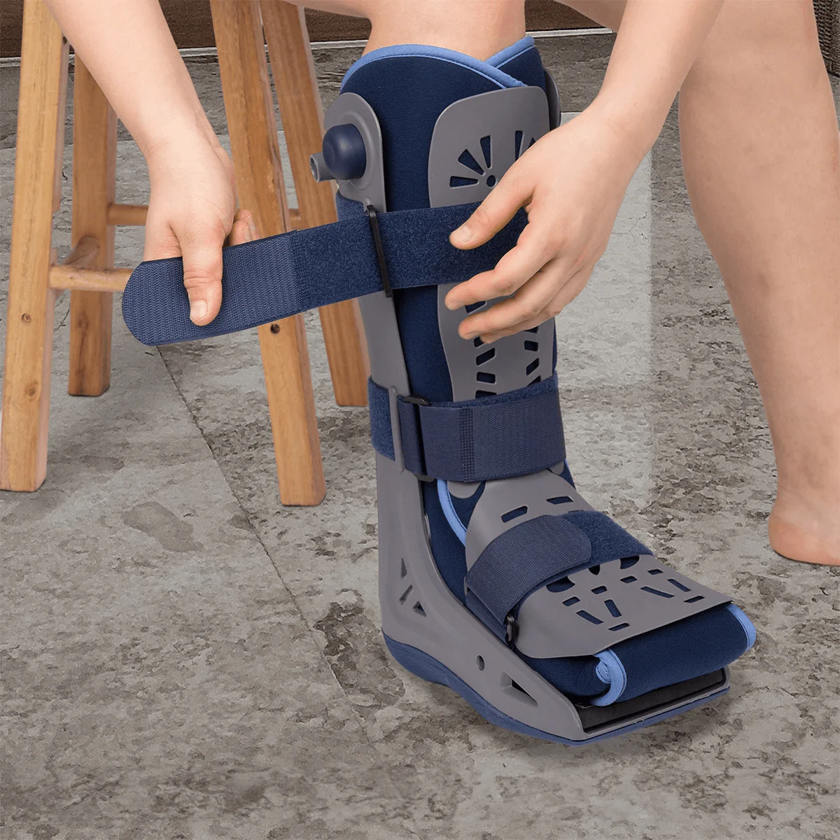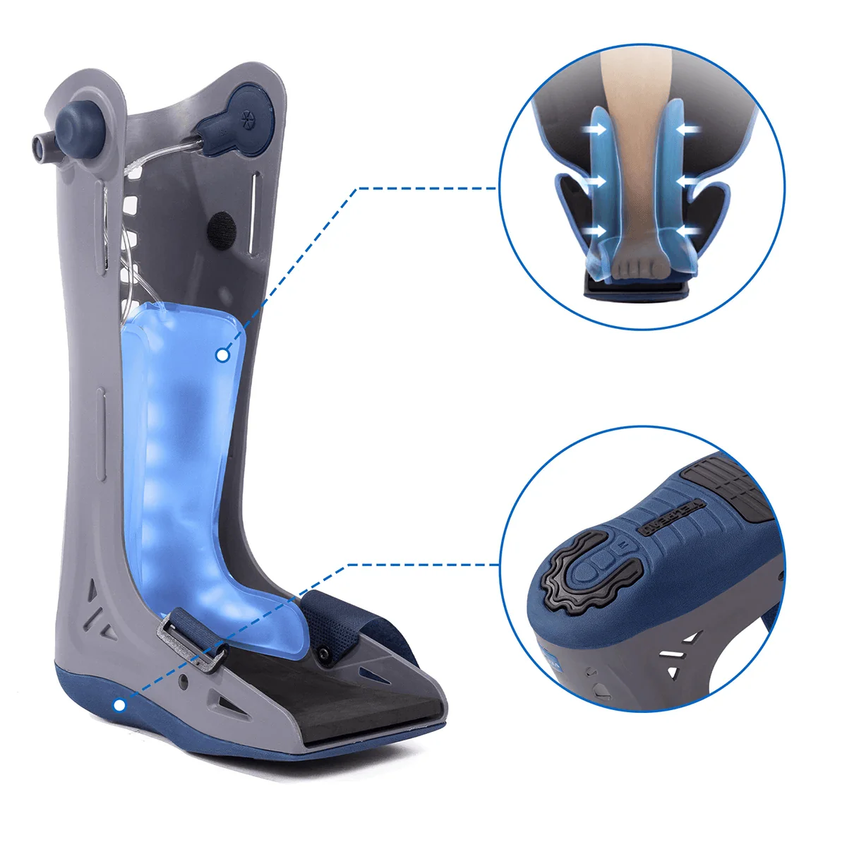 La Botte de marche VELPEAU est une orthèse de cheville à la pointe de l’ergonomie et de la fonctionnalité. Conçue pour une stabilisation exemplaire, cette attelle ajustable est constituée de matériaux résistants. Des sangles de fixation bleues permettent un ajustement précis, tandis que sa structure grise favorise une circulation de l’air optimale, essentielle à la santé de la peau. La semelle antidérapante assure une marche sûre, évitant les glissements et les chutes.