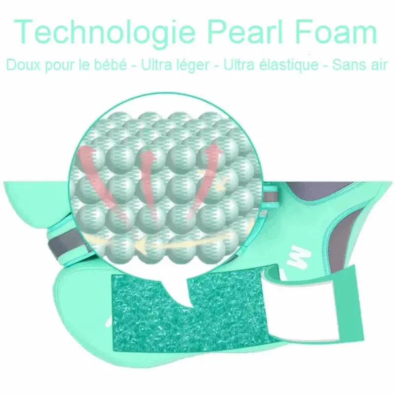Cette bouée bébé avec ombrelle et coussin est conçue en matière 3D PearlFoamTM . Cette technologie, inspirée des bouées de sauvetage pour bateaux, permet à votre flotteur d’être non-gonflable et increvable.