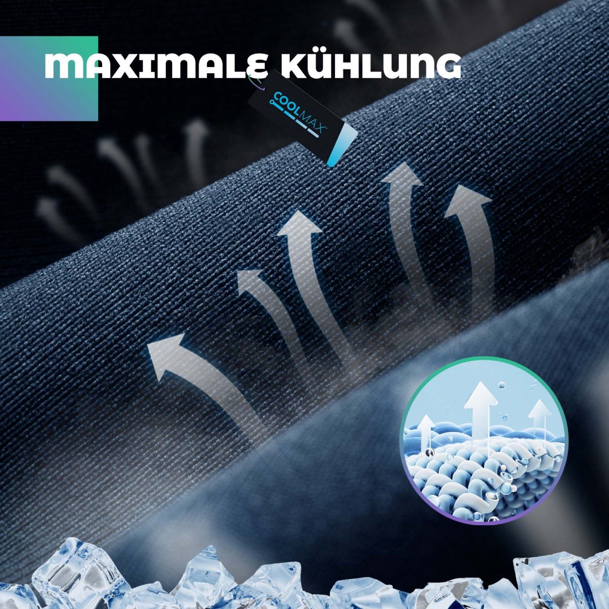 - Frais et respirant : Tissu en fibres fraîches COOLMAX ; sa structure à 4 canaux évacue rapidement la transpiration et l’humidité de la surface de la peau et sèche 4 à 8 fois plus vite que le coton.