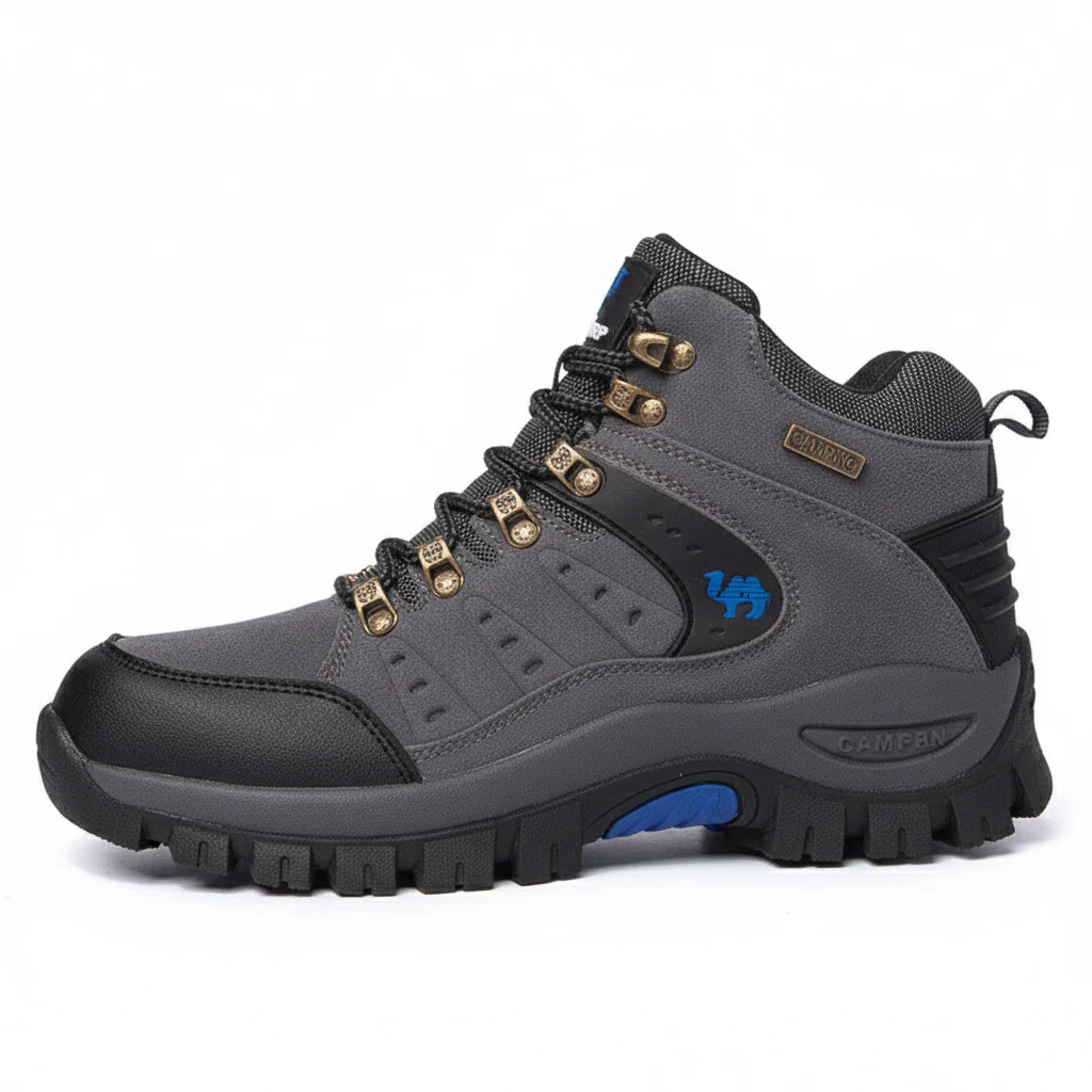 La semelle intermédiaire en EVA amortit les chocs et réduit la fatigue articulaire, tandis que la semelle extérieure en caoutchouc à crampons profonds garantit une adhérence fiable sur roches, boue ou herbe mouillée. Avec leur talon intermédiaire (3–5 cm) et leur conception polyvalente, ces chaussures sont adaptées à la randonnée sur 4 saisons, que ce soit pour un weekend nature ou une expédition plus engagée.
