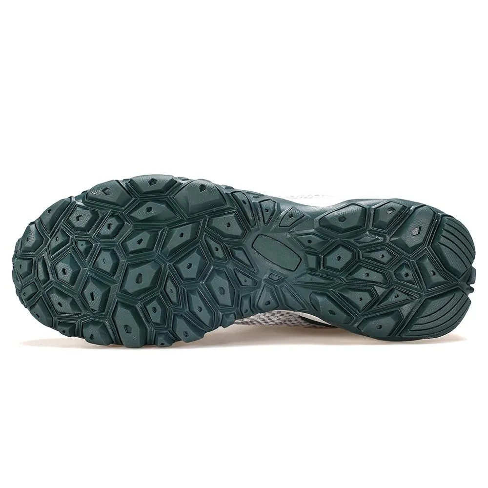 Semelle intermédiaire en MD/Phylon (EVA seconde foaming) offrant un amorti efficace et un déroulé fluide. Semelle extérieure en caoutchouc antidérapant à crampons multidirectionnels pour l’adhérence sur rocher, terre, herbe humide et sols mixtes. Poids indicatif 350 g la chaussure en 42, drop env. 10 mm. Tailles EU 36–46, versions homme et femme, plusieurs coloris.