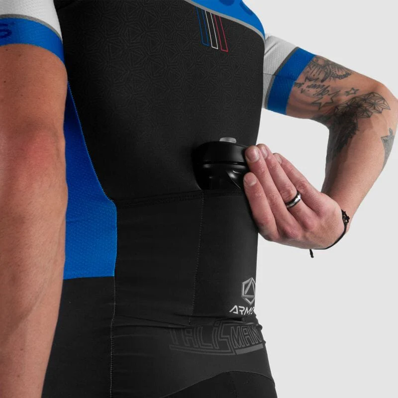 La collection ARMOS TALISMAN est conçue pour les athlètes recherchant des produits de qualité et confortables. Cette combinaison roller a été conçue à partir de 3 tissus ifférents qui ont été positionnés afin d’optimiser la performance et l’évacuation de la transpiration. Le produit est aussi doté des dernières technologies dans le monde du textile sportif grâce à notamment sa découpe laser aux manches sans couture et ses bandes cuisse avec silicone injecté. Elle est aussi adaptée pour les courtes distances sur piste, route ou même Indoor. Ses 3 poches arrière ouvertes et son zip avant descendent assez bas pour une grande praticité et font aussi de cette combinaison un excellent produit pour les épreuves d’endurance.