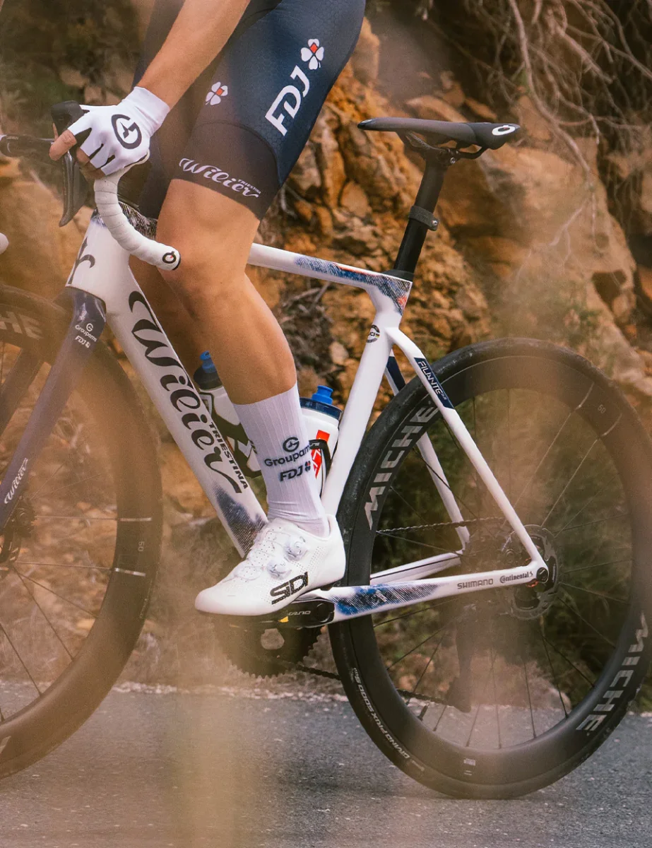 Filante SLR est un vélo aérodynamique extrêmement léger qui améliore nettement le rapport entre rigidité à la torsion et poids (stiffness to weight). Le vélo est utilisé par les athlètes de l’équipe cycliste Groupama – FDJ.