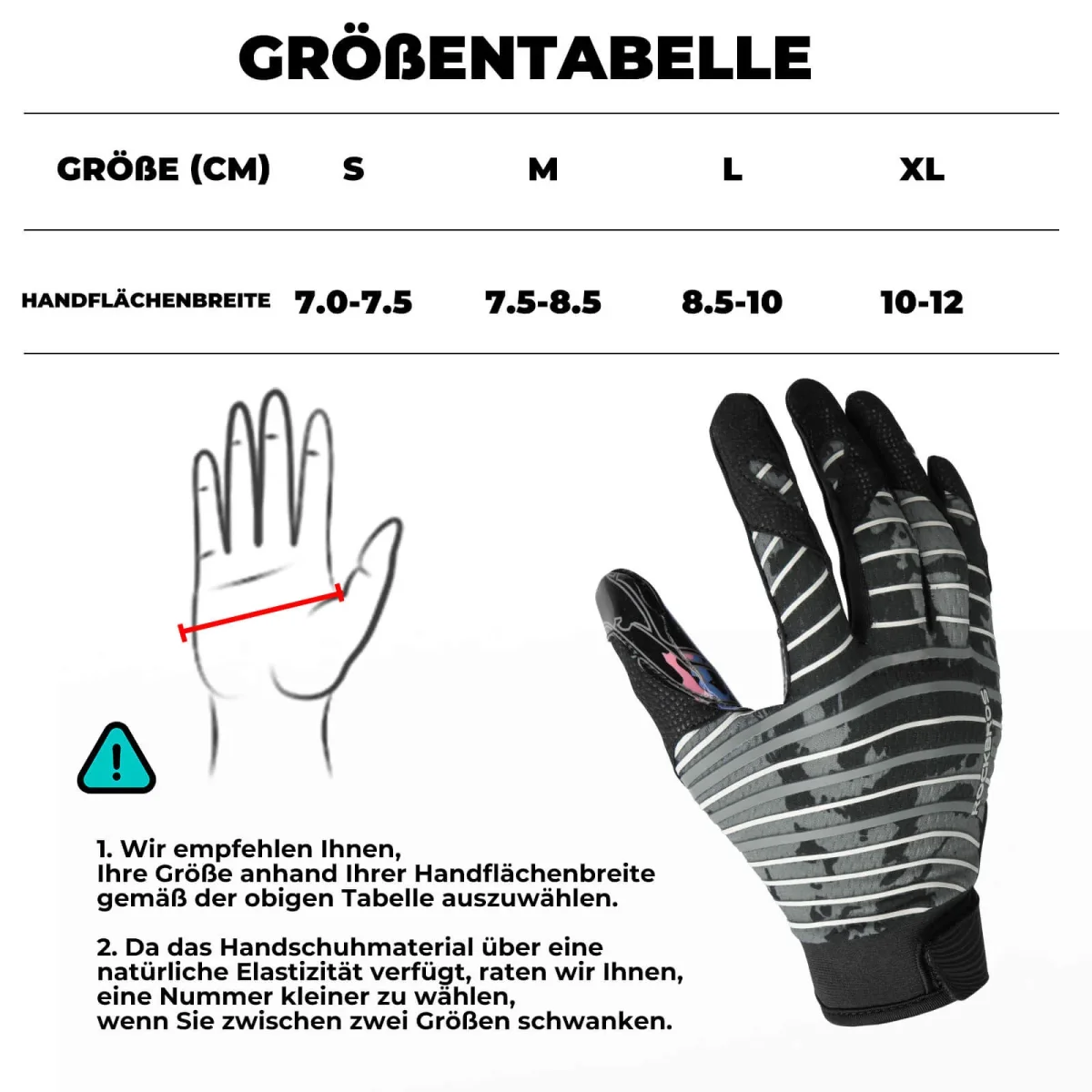 Guide des tailles clair pour un ajustement parfait : mesurez la largeur de votre paume (7 à 12 cm) pour déterminer la taille S à XL.