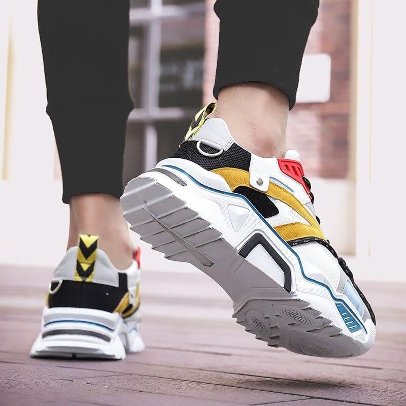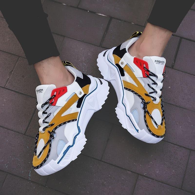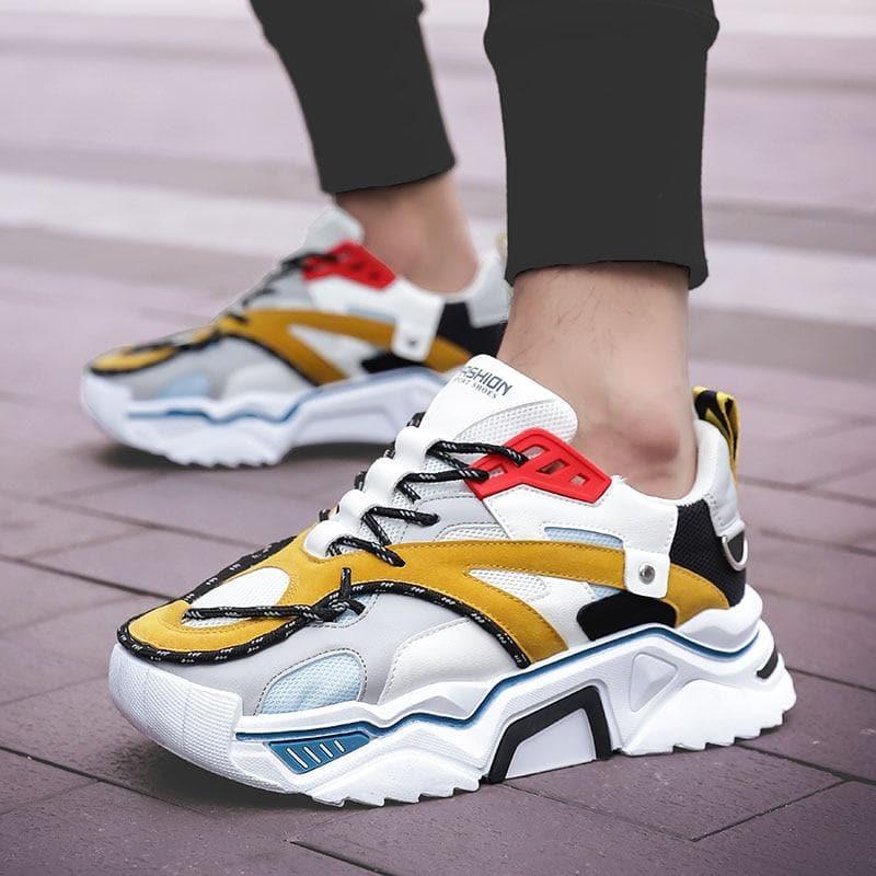 – **Design audacieux et tendance** : Une combinaison unique de jaune moutarde, blanc croustillant, avec une touche de noir et de rouge pour un look urbain chic qui attire les regards. – **Confort premium** : Tige respirante et semelle intérieure rembourrée pour un confort optimal tout au long de la journée. – **Construction durable** : Une semelle épaisse et robuste qui vous offre non seulement une posture plus élevée, mais garantit aussi la longévité de vos chaussures, parfaites pour l’exploration urbaine.
