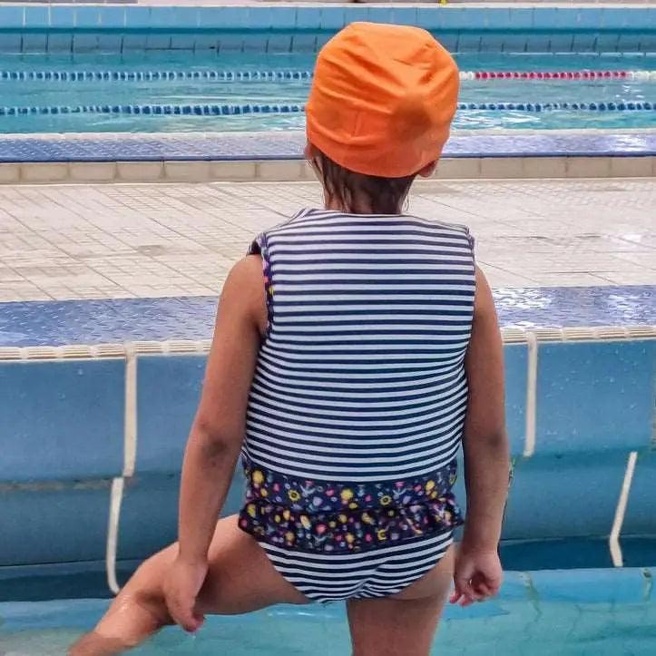 Ce maillot allie beauté visuelle et technologie de pointe pour que les petites nageuses apprennent à nager en confiance et en style.