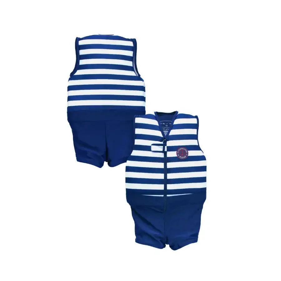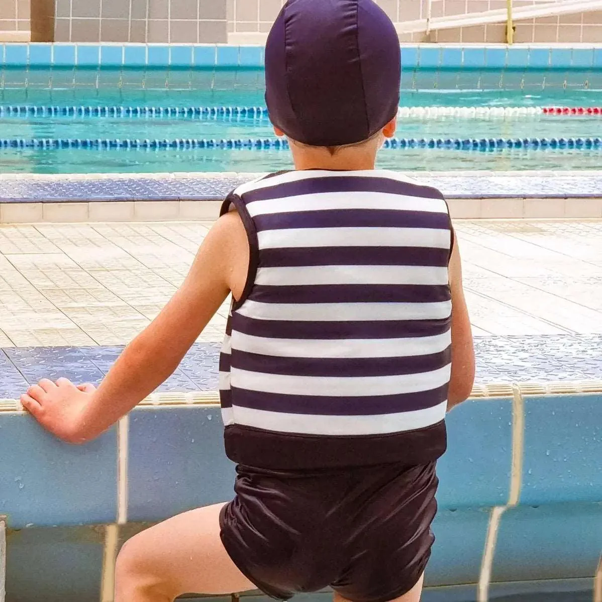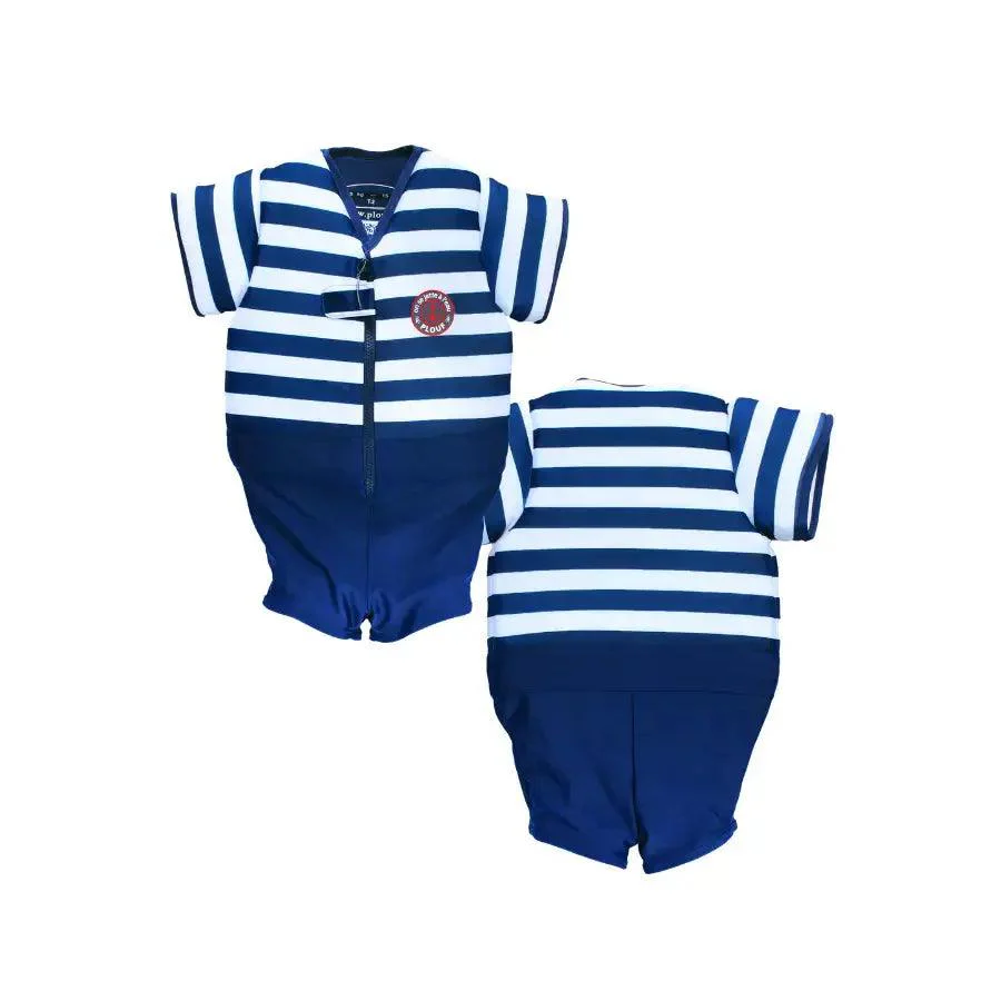 Ce maillot de bain allie style et fonctionnalité, parfait pour les jeunes aventuriers qui veulent profiter de l’eau en toute confiance. Les rayures bleu marine et blanches évoquent l’esprit marin, idéal pour les journées à la plage ou à la piscine.