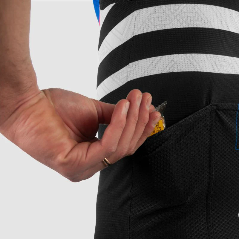 Marquez l’histoire avec ce maillot ICON. Doté d’une combinaison de tissus très aérés et respirants, vous ne le sentirez pas car il donne une sensation de seconde peau. Ses manches sont en découpe laser sans couture afin de limiter les irritations. Ce produit est idéal pour l’été et au printemps. Totalement fabriqué en Italie, sa qualité est irréprochable et vous ne pourrez vous passer de ce maillot exceptionnel. LES CARACTERISTIQUES – Coupe Pro slim – Col Italien bas – Zip YKK avec fermoir autobloquant – Tissu aéré sur l’avant et l’arrière – Mesh alvéolée sous les aisselles – Fibre ultra aérée sur les manches – Découpe laser aux manches – Elastique avec silicone à la taille – 3 poches arrière ouvertes – Produit 100% fabriqué en Italie USAGE – Spécialement pour le cyclisme sur route ou VTT – Pour les cyclistes exigeants qui recherchent un maillot d’exception pour l’été LAVAGE : En machine à 30° (pas de sèche linge et de repassage).AVIS CLIENTS