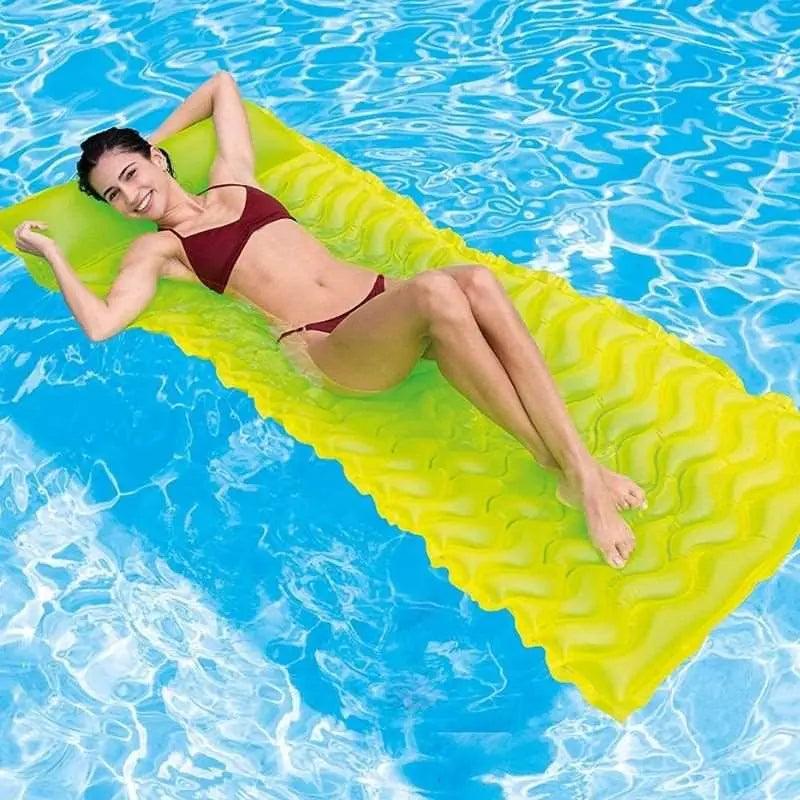 Profitez de la saison estivale pour bronzer dans votre jardin, Ă  bord de votre matelas flottant pour piscine. VĂ©ritable matelas de piscine Ă  rouler, cet accessoire flottant n’est pas Ă  gonfler contrairement Ă  la plupart des bouĂ©es et matelas pour piscine.
