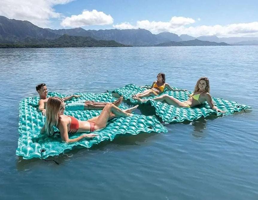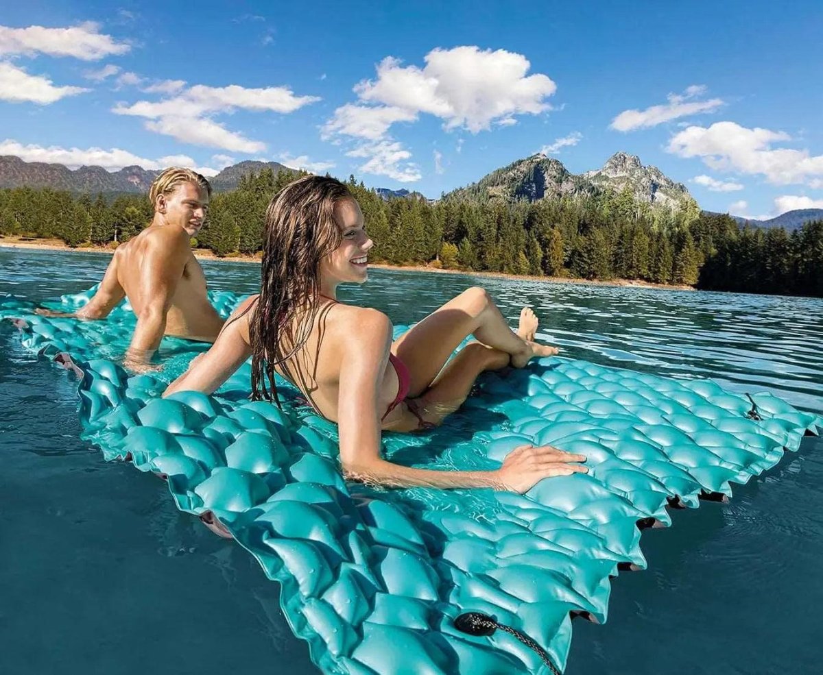 Ce matelas flottant est conçu pour supporter jusqu’à 120 kg, parfait pour une utilisation individuelle, en duo ou à trois enfants.