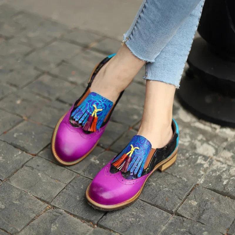 Mocassins Orthopédique Femmes à Glands en Cuir