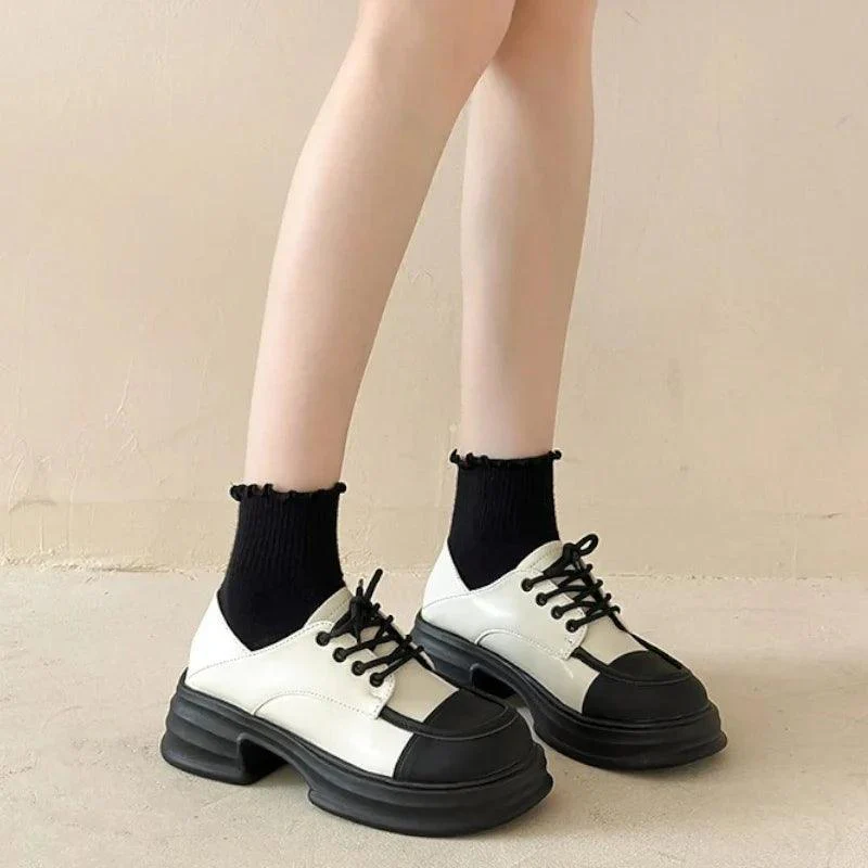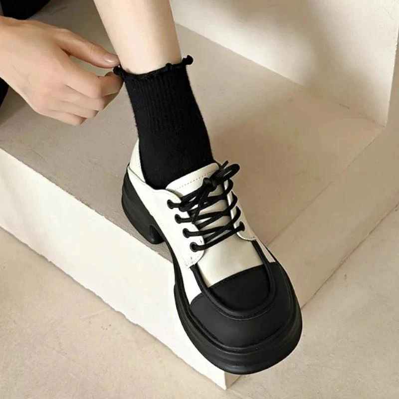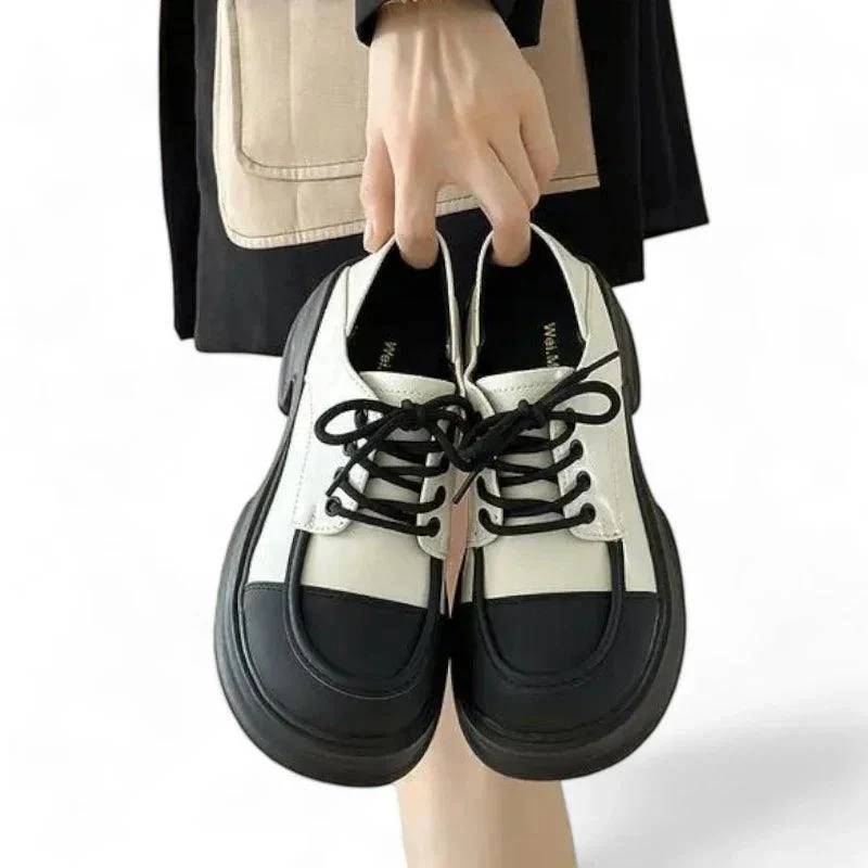 Les Mocassins Orthopédique femmes sont conçus pour offrir un confort inégalé grâce à leur talon compensé de 5 cm, qui procure un soutien optimal tout au long de la journée. Leur construction en cuir PU verni (Vegan) garantit une durabilité exceptionnelle tout en étant respectueuse de l’environnement. Le design bicolore et les lacets ajoutent une touche d’élégance moderne, faisant de ces mocassins le choix parfait pour toutes les occasions.