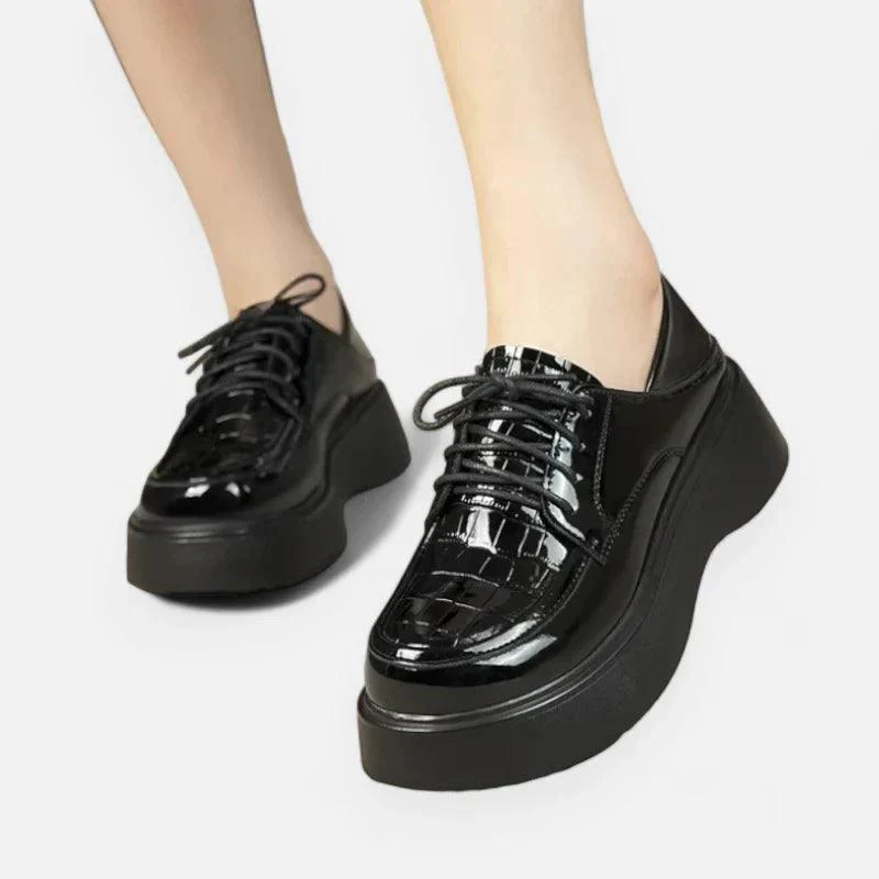 Mocassin Orthopédique femme compensés à lacets en cuir