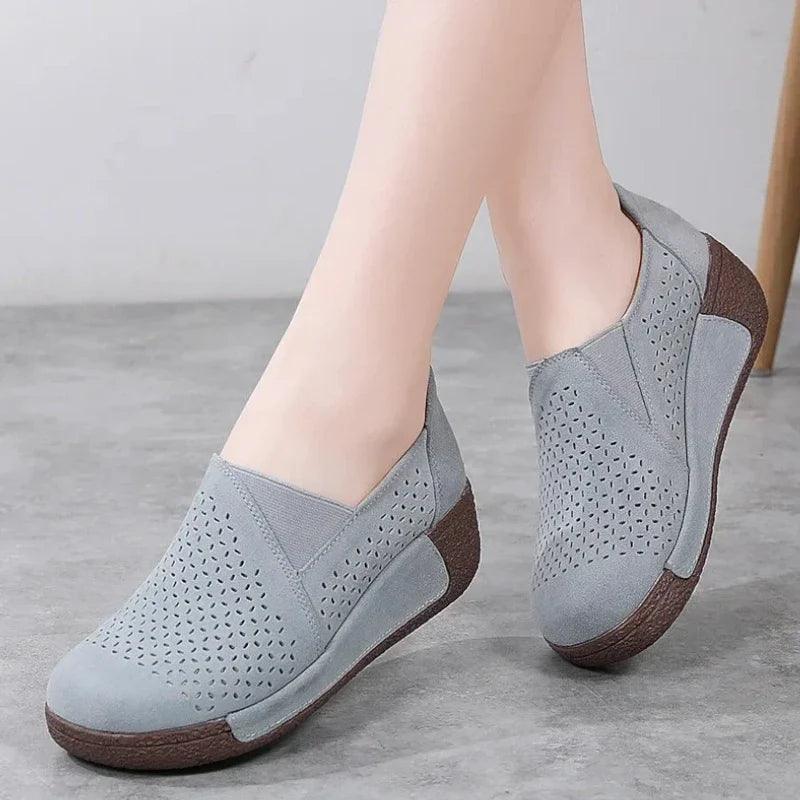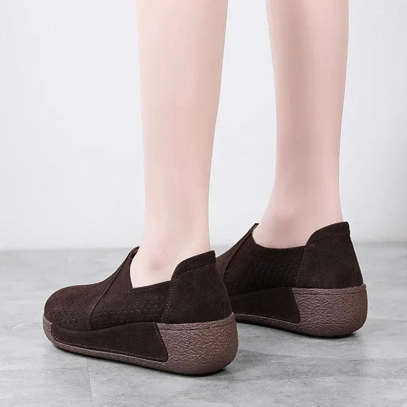 Mocassins Orthopédique Femmes Compensés Ajourés en Daim