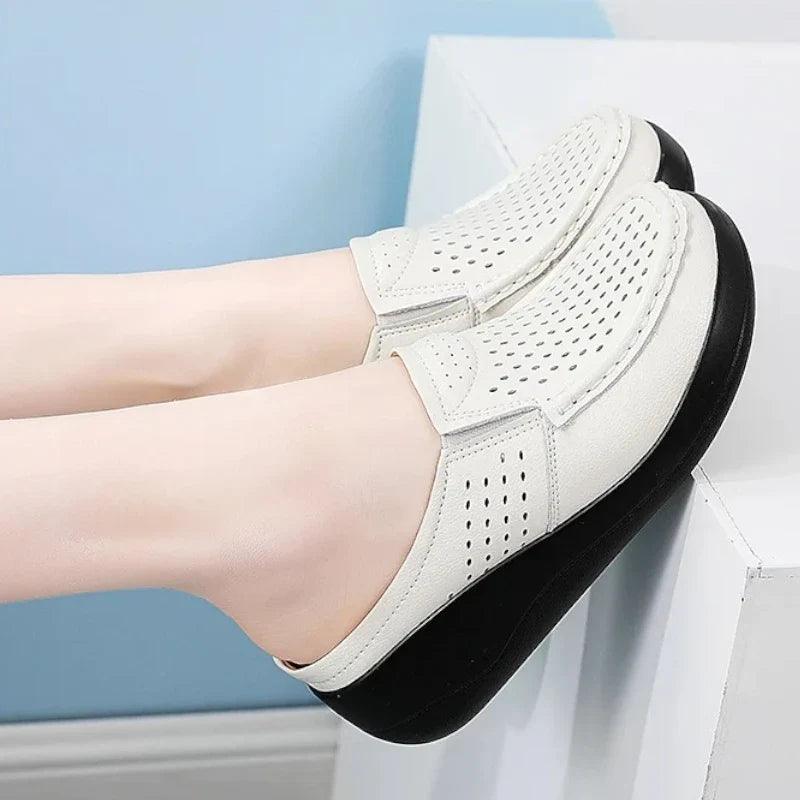 Offrez-vous un look estival chic et raffiné avec nos Mocassins Orthopédiques Femmes mules compensées ajourées. Conçus pour les journées ensoleillées, ces mocassins associent élégance et confort exceptionnel. Leur design mule permet une mise en place facile tout en offrant un ajustement optimal. Les détails ajourés apportent une touche de légèreté et de modernité, tandis que les compensés assurent une silhouette féminine et élancée. Idéals pour une journée en ville ou une escapade estivale, ces mocassins ajourés vous garantissent style et bien-être à chaque pas.