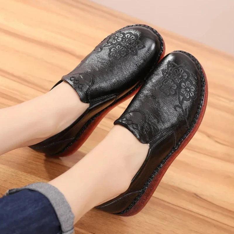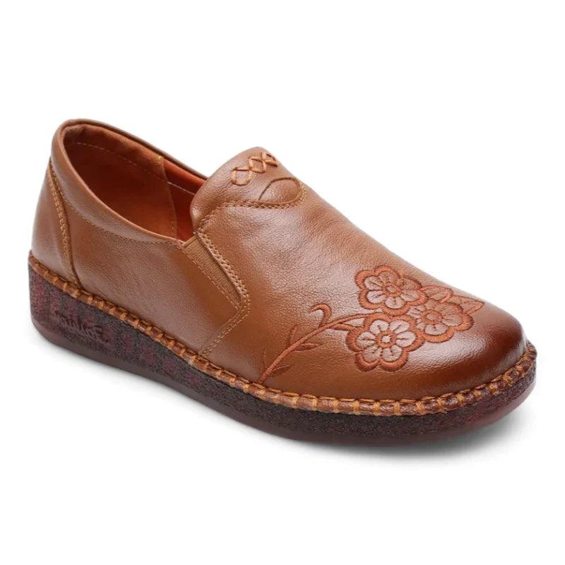 Laissez-vous charmer par l’élégance décontractée de nos Mocassins Orthopédique femmes, confectionnés en cuir véritable de haute qualité. Avec leurs motifs floraux exquis, ces mocassins ajoutent une touche de féminité raffinée à votre tenue. Le cuir souple et durable assure un confort exceptionnel tout au long de la journée.