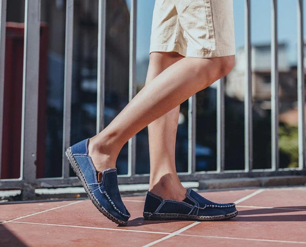 Conçus en PU de qualité, toile résistante et denim respirant, ces mocassins garantissent un confort durable au quotidien. Leur texture douce épouse la forme du pied, tandis que la semelle en caoutchouc antidérapante assure une stabilité idéale, même lors de vos journées les plus chargées.