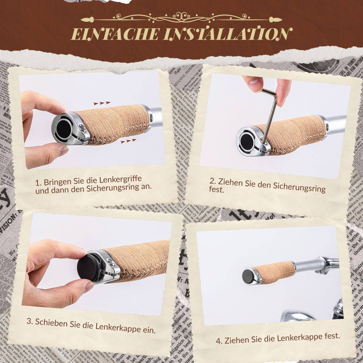Système de verrouillage : Chaque côté du guidon est équipé d’une bague de verrouillage en alliage d’aluminium, ce qui renforce la sécurité de l’installation et empêche les poignées de se détacher facilement. De plus, les joints inclus protègent contre la poussière et la pluie.