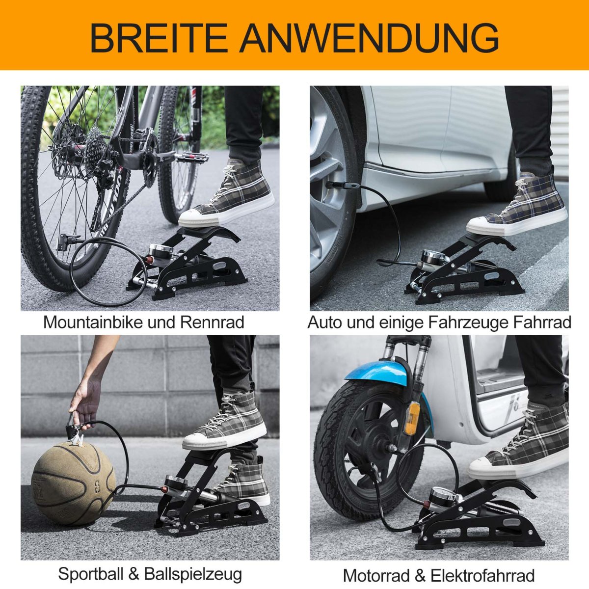 - Construction robuste : Le tuyau en caoutchouc amovible est résistant au gel et à la chaleur et mesure environ 30 cm de long. La pédale plus large est antidérapante pour une meilleure stabilité pendant le gonflage.