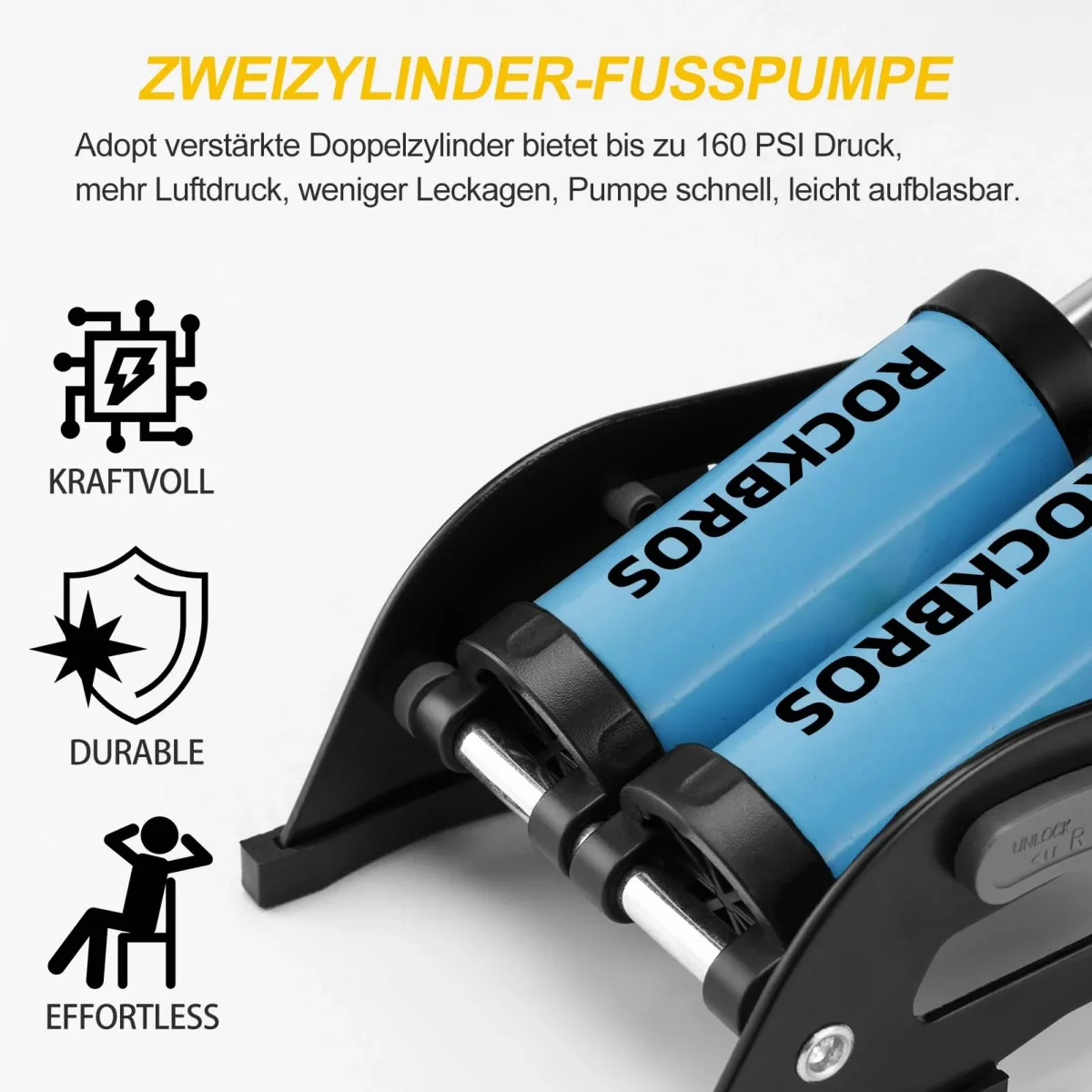 Pompe à air à pied avec manomètre à double cylindre ROCKBROS