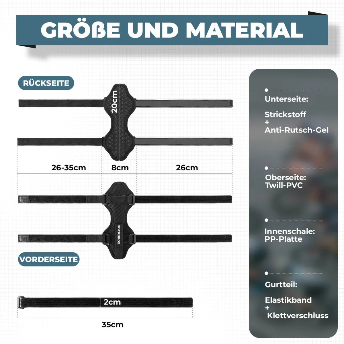 | Couleur | Noir | Matière | Tissu tricoté + caoutchouc antidérapant (dessous) Sergé PVC (surface) Panneau PP (support intérieur) Élastique + attache auto-agrippante (sangle) |