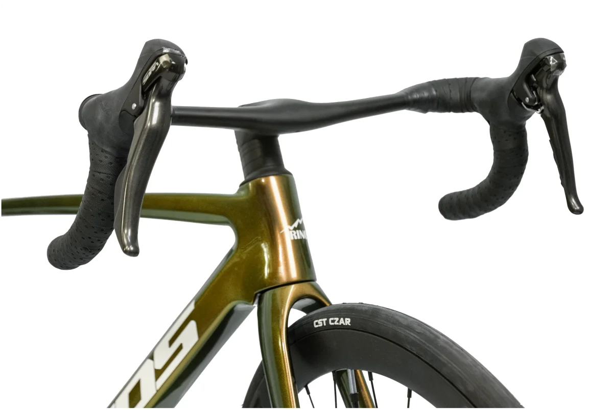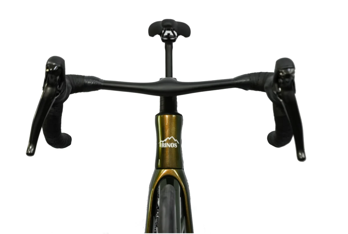 Avec un cadre en carbone conforme UCI, une fourche et un potence absorbant les vibrations, un guidon et des roues aérodynamiques et un design attrayant, RINOS est le bon vélo pour les cyclistes soucieux de la qualité.