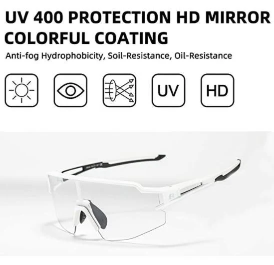 ROCKBROS 10172 Lunettes de soleil photochromatiques Lunettes de vélo Blanc