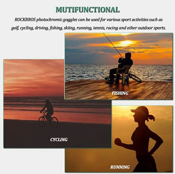 MUTIFONCTIONNEL : Les lunettes photochromiques ROCKBROS peuvent être utilisées pour diverses activités sportives telles que le golf, le cyclisme, la conduite, la pêche, le ski, la course, le tennis, la course et d’autres sports de plein air.
