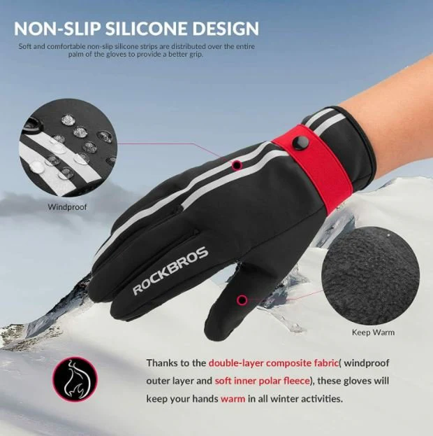 ROCKBROS Gants de Cyclisme Femme Homme Gants d’Hiver Écran Tactile Coupe-Vent 1 M