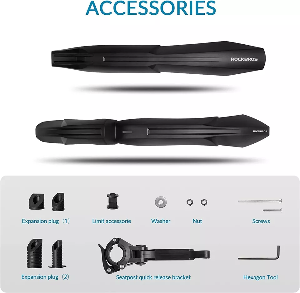 ROCKBROS jeu de garde-boue de vélo 24-29 pouces garde-boue de vélo à dégagement rapide vtt