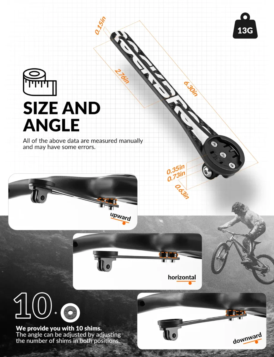 - Matériau en fibre de carbone Le support pour ordinateur de vélo est fabriqué en fibre de carbone, qui est durable, résistante aux rayures et ne se fissure pas. Il résiste bien à diverses intempéries telles que la pluie et la neige. Le poids du support n’est que de 13 g, ce qui est léger mais solide. Il est compatible avec divers compteurs de vélo, éclairages de vélo et caméras d’action sportive.