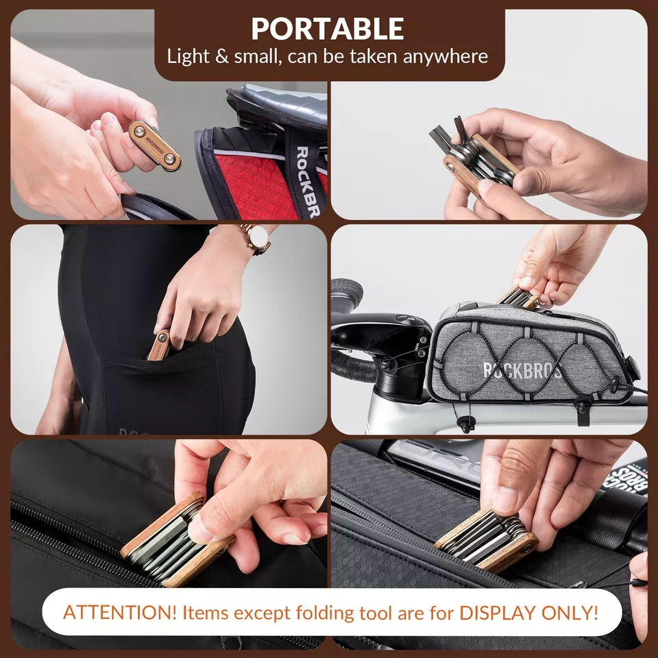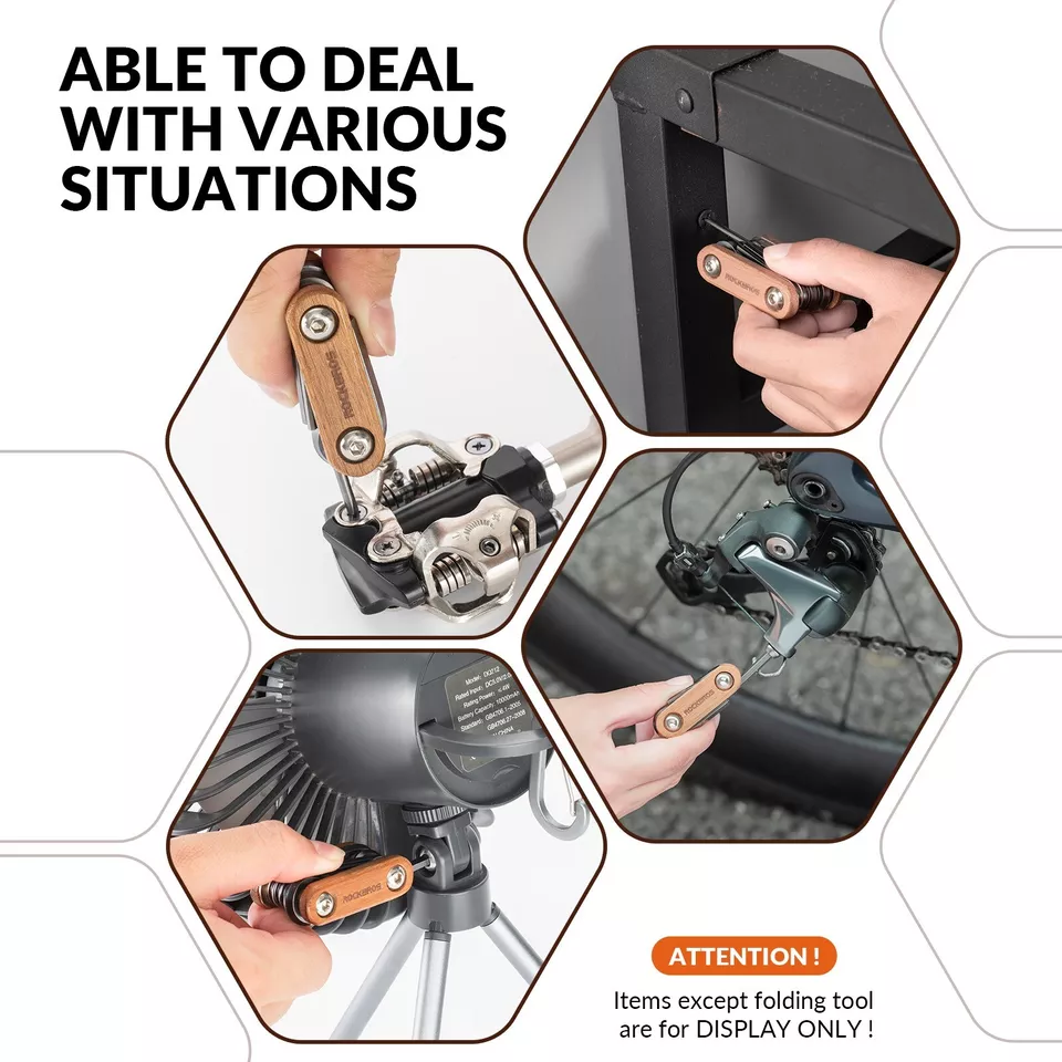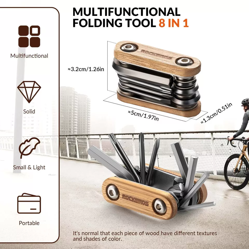 ROCKBROS Outil de réparation de vélo 8 en 1 Multitool en bois en acier inoxydable