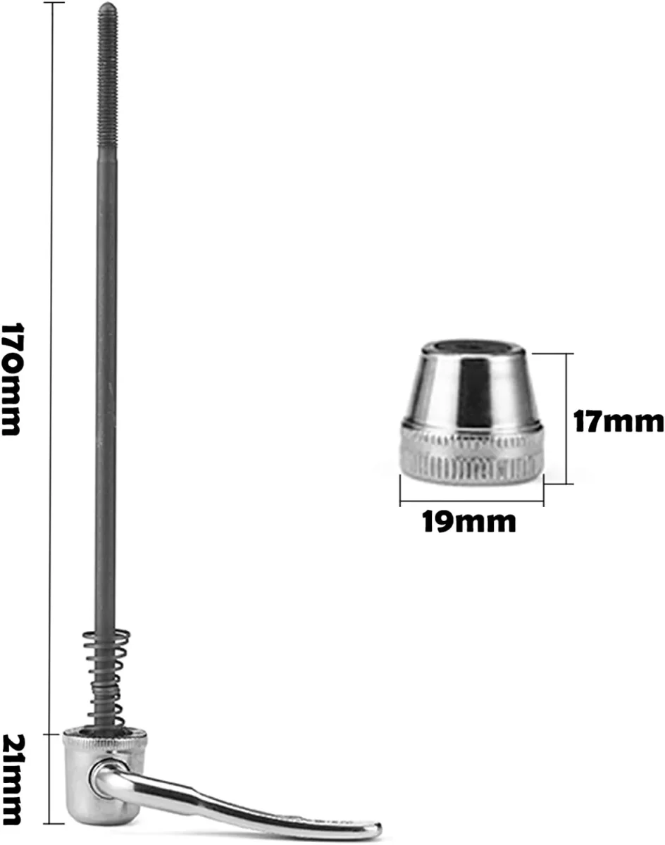 Marque : ROCKBROS Couleur : Argent Type : VTT Matière : Aluminium Poids : 97 g Longueur : 19 cm ADAPTÉ : le dégagement rapide convient aux entraîneurs à roulettes. LONGUEUR : La longueur est d’environ 19 cm. LONGUEUR DE LA BROCHE : Environ 17CM. DURABLE : Le matériau est de l’acier inoxydable très résistant.