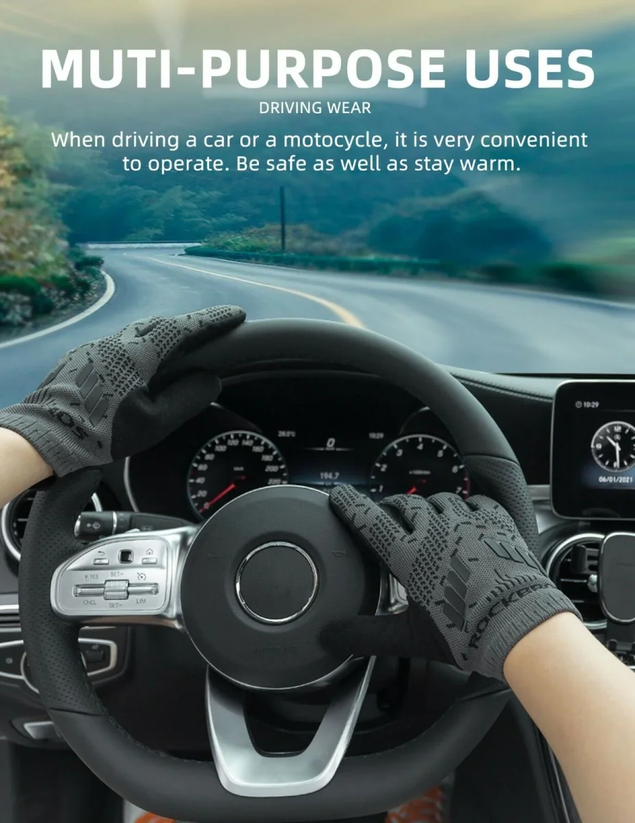 Écran tactile : un tissu conducteur est utilisé sur l’index et le pouce du gant de course. L’écran tactile sensible peut vous aider à répondre aux appels et à utiliser la navigation pendant la conduite.