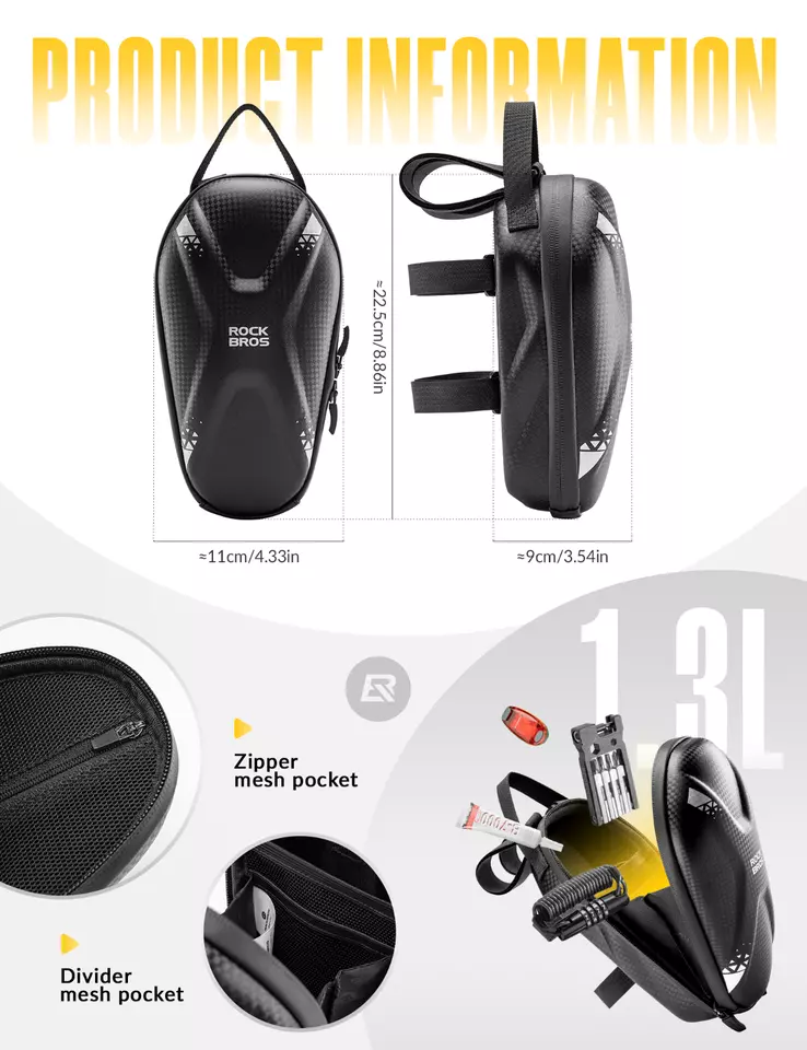 Capacité de 1,3 L : Le sac pour scooter offre suffisamment d’espace de stockage de 1,3 L. Les portefeuilles, les téléphones portables, les clés, les outils, etc. peuvent y être soigneusement placés. Vous n’avez pas à craindre de manquer d’espace.