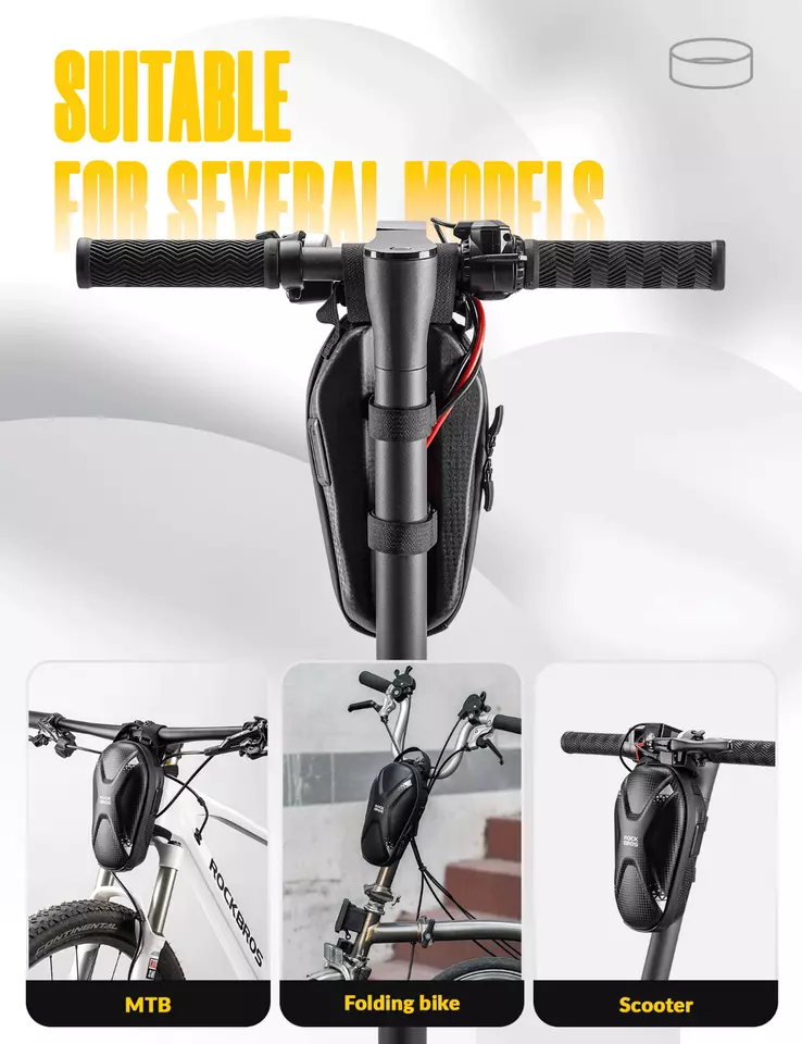 Large application : Le sac pour scooter électrique convient aux scooters électriques, aux vélos pliables, aux VTT, aux vélos de course, etc. Il peut être fixé à la fois au guidon et au cadre.