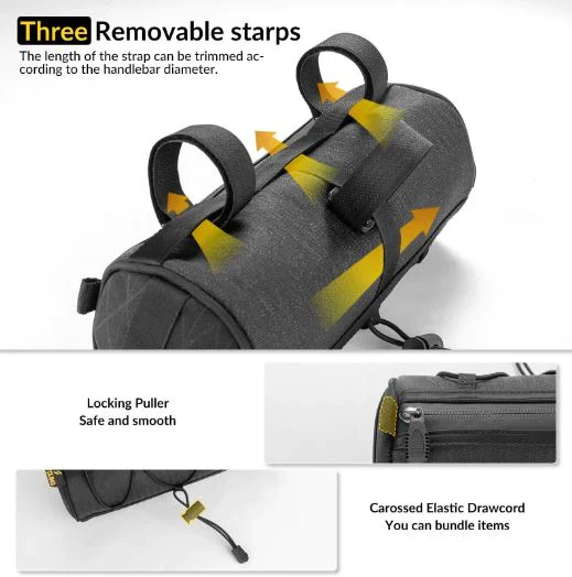 Grande capacité : La capacité de ce sac de vélo pour guidon est d’environ 2,4 L. La conception de la fermeture à glissière horizontale supérieure est pratique, vous pouvez y mettre des objets et vous pouvez les retirer très facilement. La sangle élastique avant peut accrocher des vêtements mouillés. Ce sac est idéal pour la conduite de tous les jours