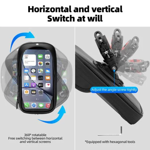 CONCEPTION DE LA PLAQUE D’OMBRAGE : Compte tenu de la réflexion de l’écran du téléphone qui rend impossible de voir le téléphone, nous avons conçu un écran léger sur le devant de ce sac de moto afin que vous puissiez voir clairement l’écran qu’il soit au soleil ou à la forte lumière de la nuit.