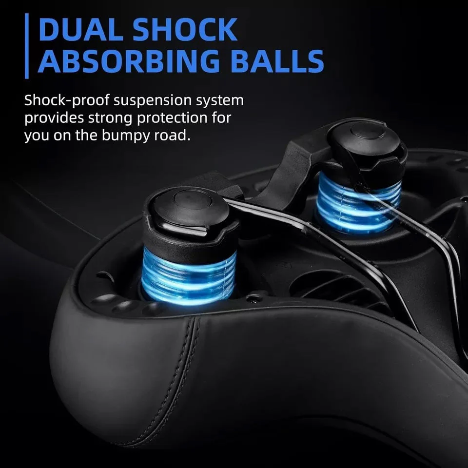 SIÈGE CONFORTABLE : Découvrez un confort ultime avec notre siège doté d’un rembourrage en mousse à mémoire de forme de 5 cm d’épaisseur, complété par une suspension qui absorbe les chocs et les vibrations. Profitez d’une conduite plus fluide, même lors de sessions plus longues. Et dites adieu aux shorts rembourrés : fini les bas engourdis !