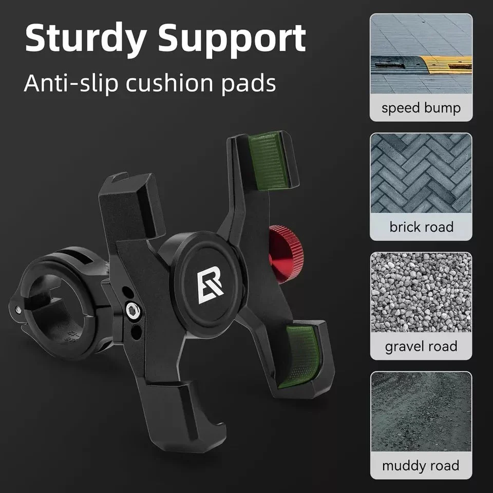 Matériau de haute qualité : le support de téléphone portable ROCKBROS est fabriqué en alliage d’aluminium léger et durable, qui présente une excellente résistance à la rouille, ce qui garantit un support stable pour votre téléphone portable et empêche efficacement de glisser.
