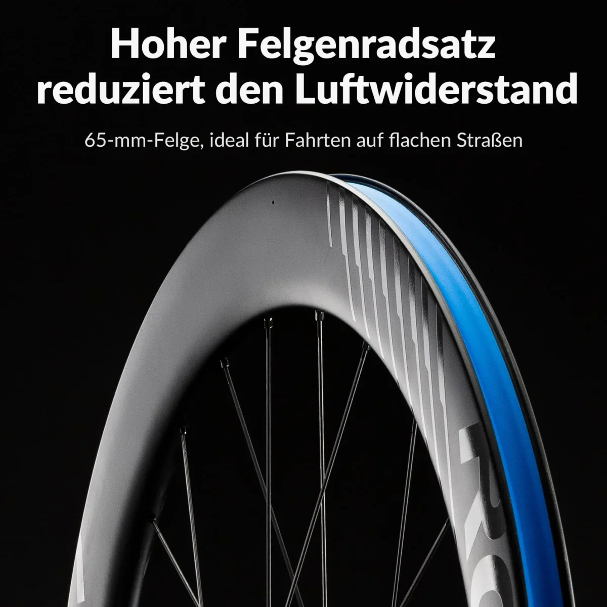 JANTE HAUTE : La jante de 65 mm de profondeur réduit considérablement la résistance frontale et latérale, vous permettant d’atteindre des vitesses plus élevées plus efficacement. Bénéficiez d’une accélération plus fluide et plus rapide, et d’un gain de puissance au moment opportun.