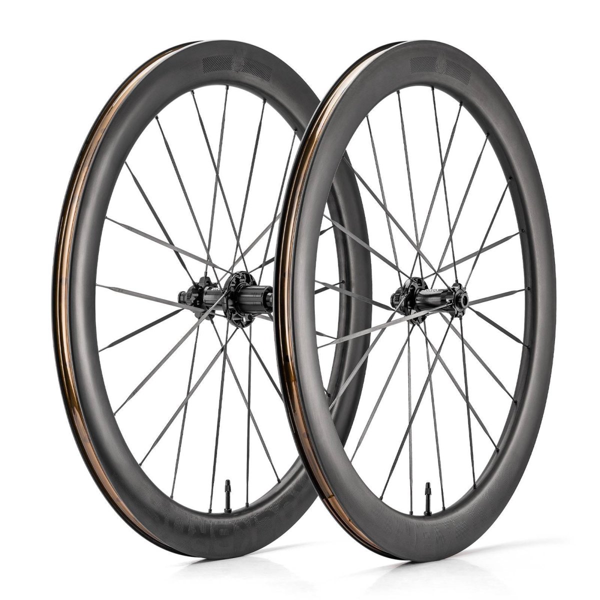 - 7+14 rayons plats en fibre de carbone : Les rayons des roues avant et arrière sont tressés selon un rapport 2:1, ce qui permet une répartition optimale de la tension et un meilleur rendement au pédalage.