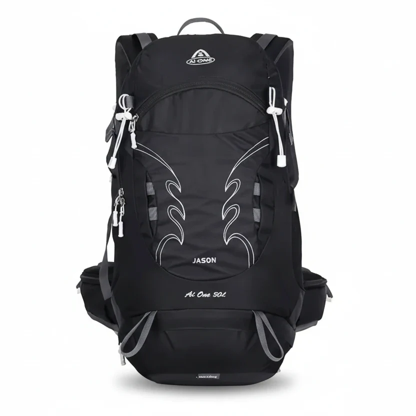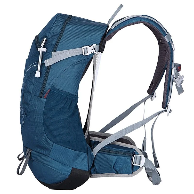 Tissu principal en nylon 420D déperlant, résistant à l’abrasion. Bretelles matelassées, ceinture ventrale pour transférer la charge, sangle de poitrine réglable. Fermetures SBS fiables. Poches latérales pour gourdes, poche frontale zippée à accès rapide, compartiments internes pour petits essentiels.