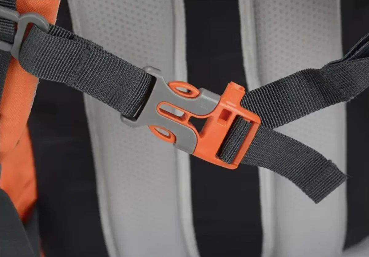 • Ergonomie soignée : bretelles en S, sternum réglable avec sifflet d’alerte.