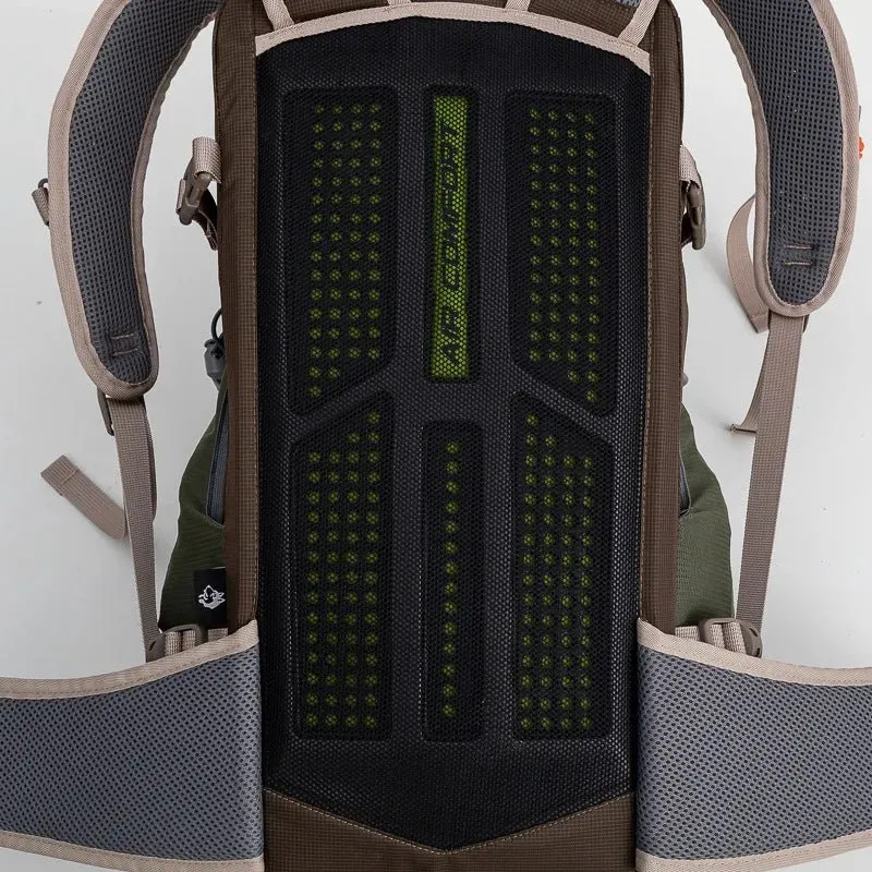 Le corps du sac utilise un nylon ripstop 210D imperméabilisé (enduction PU) qui résiste à l’abrasion et aux pluies modérées, avec une doublure intérieure en polyester pour protéger vêtements et électronique. Les bretelles courbées, la ceinture matelassée et le panneau dorsal en mousse perforée recouvert de mesh respirant répartissent la charge tout en favorisant la ventilation du dos. Les zips robustes et les sangles de compression latérales stabilisent l’ensemble sur sentiers techniques.