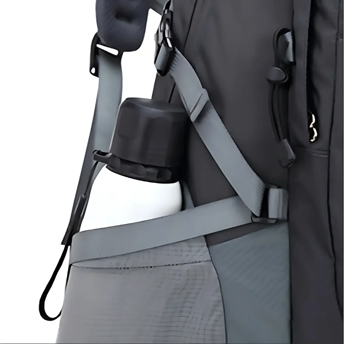 - Portage stabilisé: bretelles rembourrées, sangle sternum, ceinture ventrale ajustable.