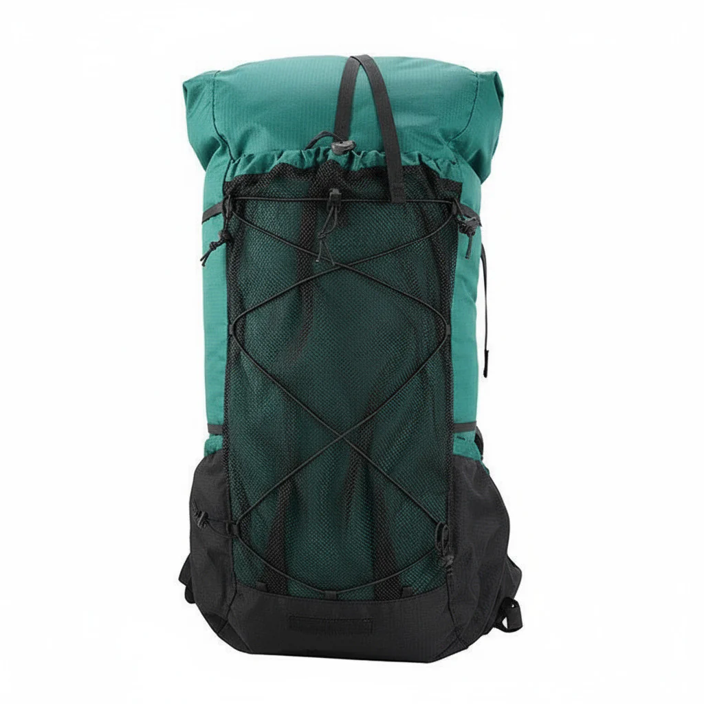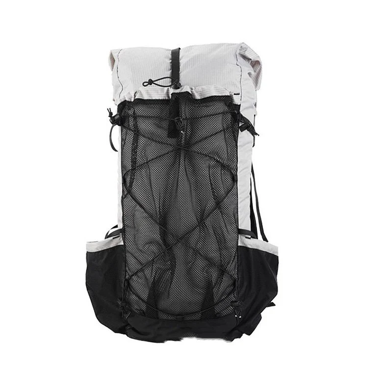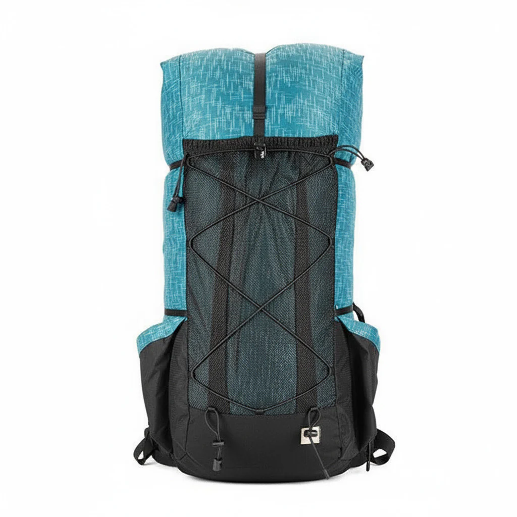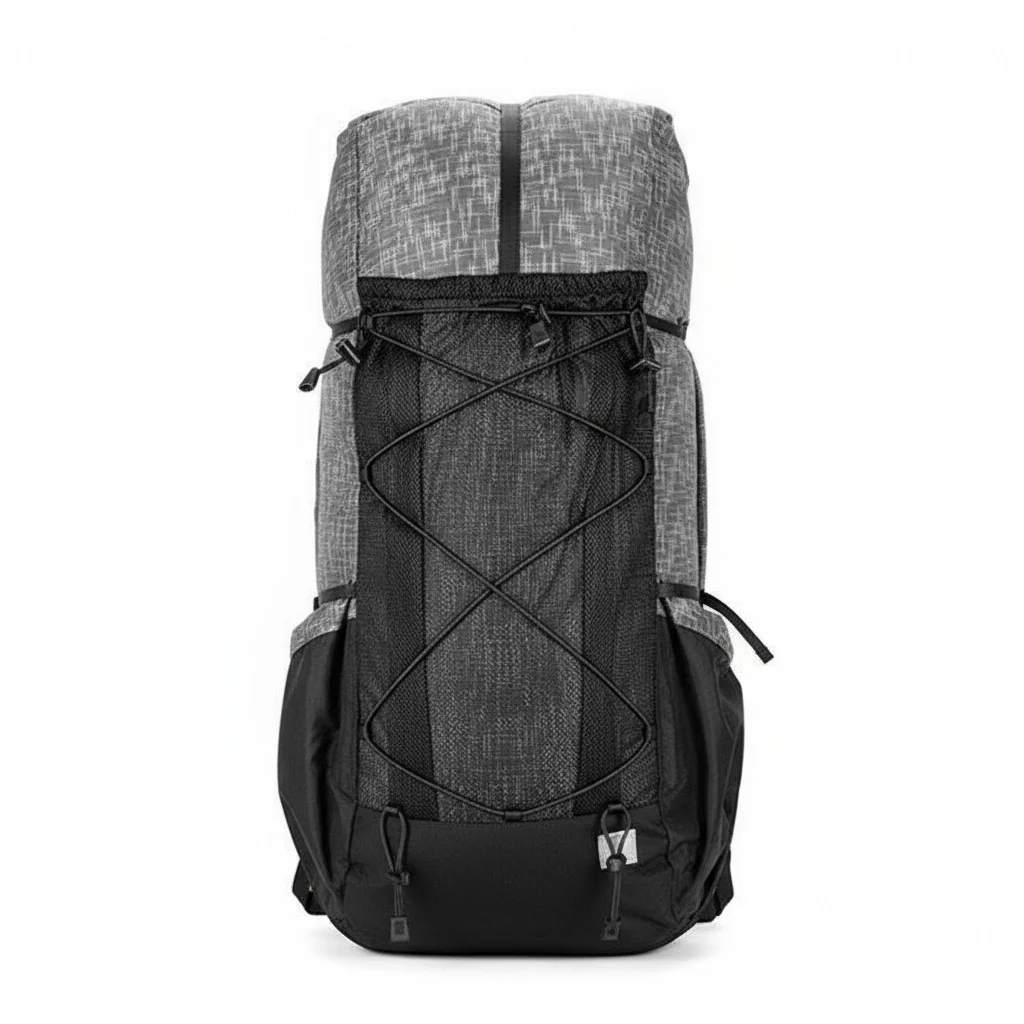 Sac à dos de randonnée 45+10 L léger et modulable. Conçu pour l’itinérance et la marche ultralight, il offre un grand volume extensible avec fermeture roll-top, un vaste filet frontal et des poches latérales élastiques pour l’accès rapide.