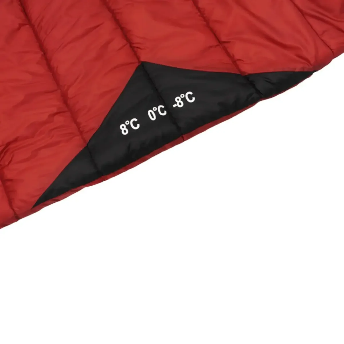 Dimensions 230 × 80 × 50 cm. Températures indicatives : confort 0 °C, limite −8 °C, extrême −18 °C (avec matelas isolant et tenue adaptée). Poids au choix : 1,5 kg. Housses de compression compactes : 38 × 26 cm (1,5 kg). Coloris disponibles : rouge, marron, vert militaire, jaune, violet.