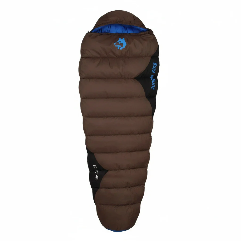 Extérieur polyester 190T déperlant et résistant à l’usure. Doublure « Chunya » douce au toucher. Isolation en fibres creuses à haut pouvoir gonflant, cloisonnement régulier pour éviter les ponts thermiques. Capuche 3D à serrage, collerette anti-courants d’air, patte anti-coincement au zip double curseur. Poche intérieure pour téléphone ou lampe. Versions zip gauche et zip droite permettant le jumelage de deux sacs.