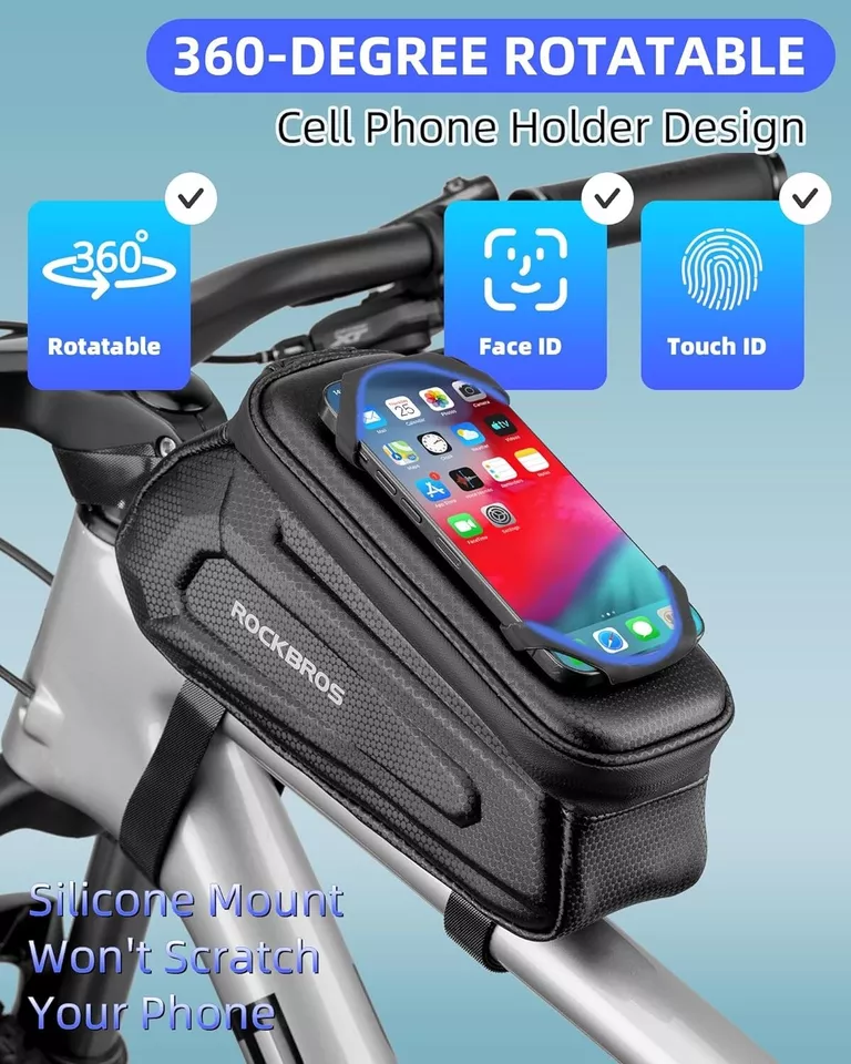 Sacoche de vélo ROCKBROS, sacoche de cadre rigide avec support pour téléphone portable, téléphone portable jusqu’à 6,5 », hydrofuge 1,5 L